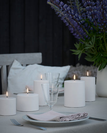 This wide LED block light from the Smooth series is perfect for your patio, balcony or conservatory. With its elegant, smooth surface and warm 3D flame, it creates a mood in all seasons. Designed for outdoor use and can withstand changing weather.