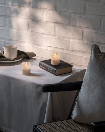 This frosted candle lantern in a warm vanilla white tone spreads a soft and atmospheric glow - perfect for creating an inviting atmosphere in any room of the home. Inside is an integrated LED light with a realistic 3D flame that shines with a pleasant, warm glow. The lantern is made of frosted glass with rounded shapes that give an elegant and timeless expression. A beautiful interior detail - both alone and in a group.