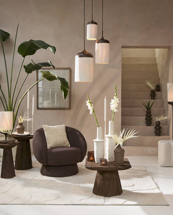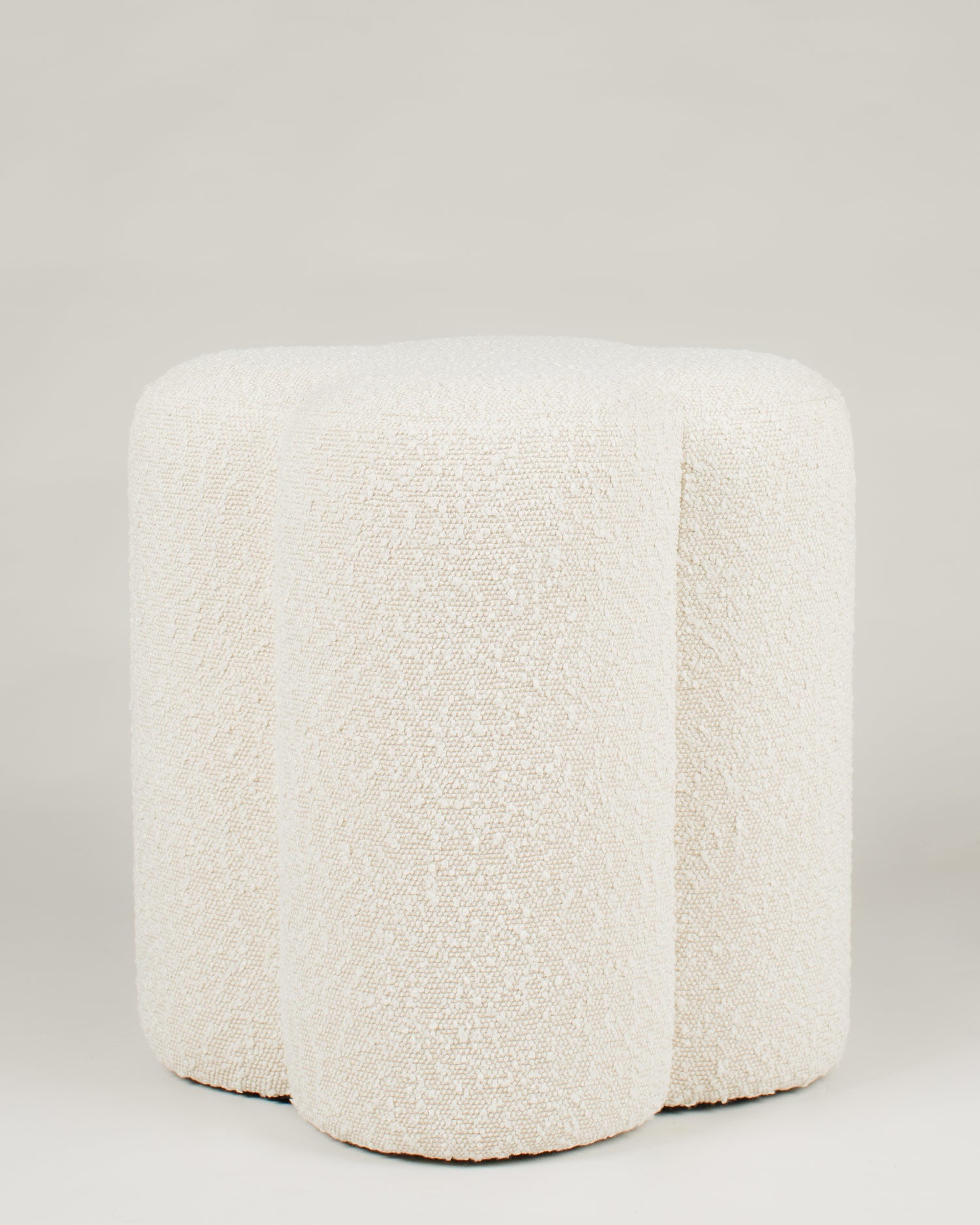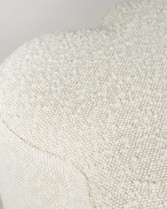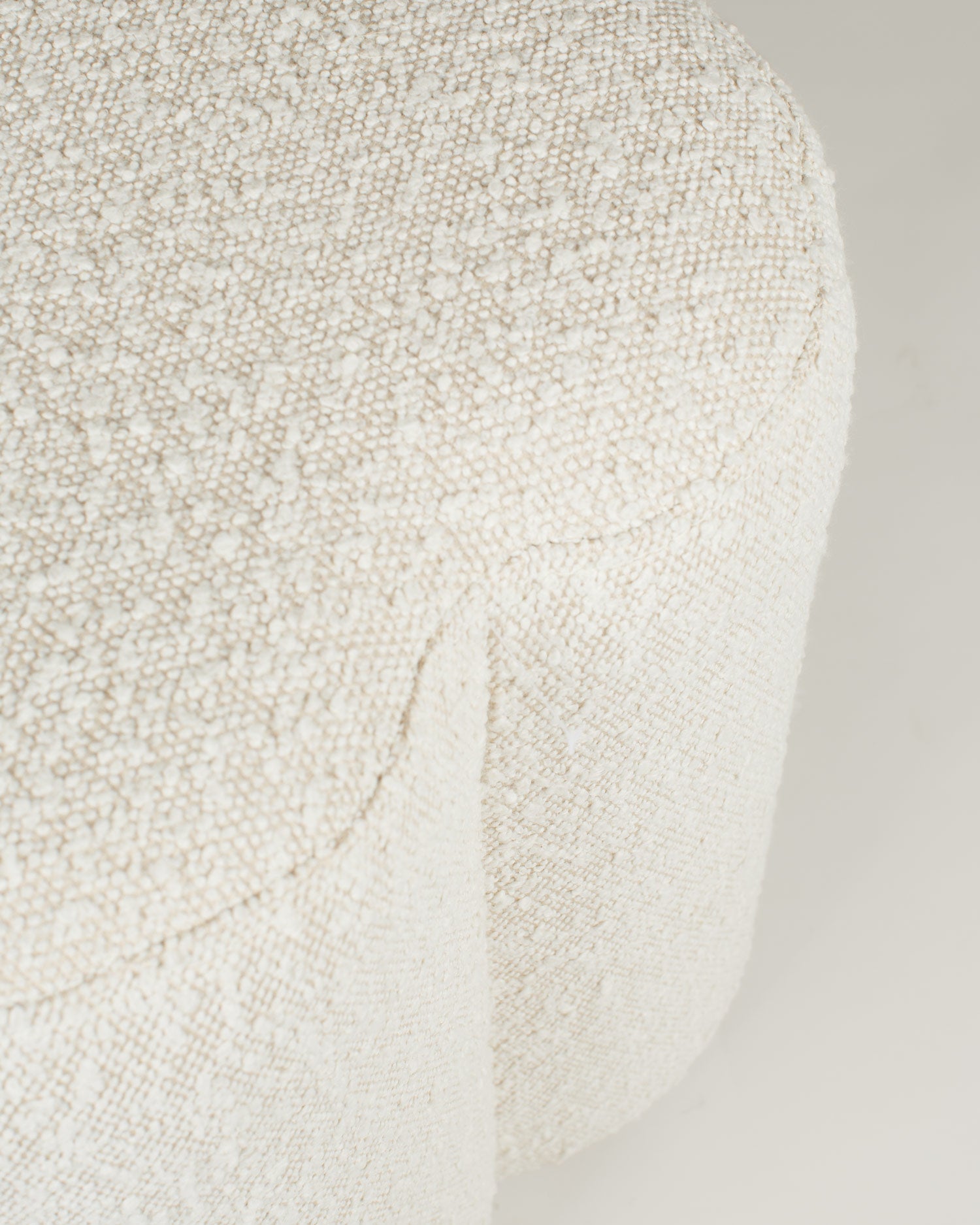 Our "Nalani" pouf upholstered in soft bouclé in a warm cream tone is both inviting and elegant. Its rounded shape and generous cushioning make it perfect as an extra seat, footstool or as a decorative detail by the sofa. A pattern in the living room that is as practical as it is aesthetic.