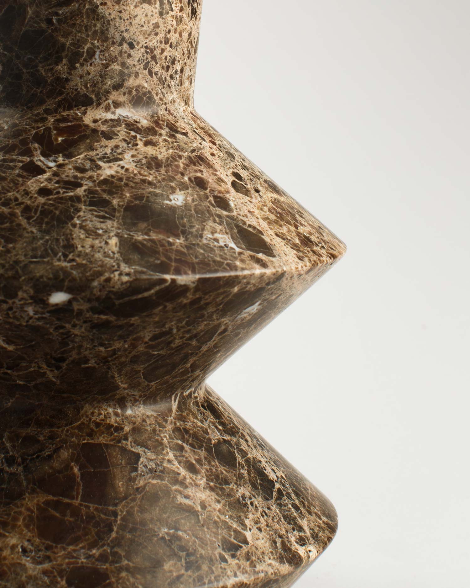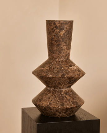 The Rhombus vase in Dark Emperador marble has deep brown tones. With its height of 35 cm, it is an impressive eye-catcher, perfect for larger flower arrangements. The unique veins of the marble make each vase unique and full of character.
